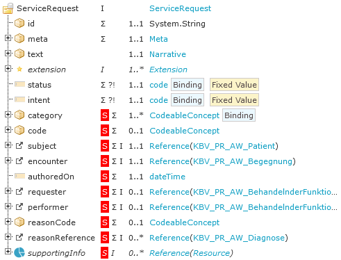 Profil für Patient der mit Überweisung zum Behandelnden kommt Die im FHIR®-Profil abgebildete Information findet sich im Informationsmodell unter 9. Behandlung_im_Auftrag_Überweisung, 9.1 Status, 9.10.1 Freitext Diagnose/Verdachtsdiagnose, 9.10.2 Referenz Diagnose/Verdachtsdiagnose, 9.11 Zusätzliche Informationen, 9.11.1 Befund Medikation, 9.11.1.1 Typ, 9.11.1.2 Referenz, 9.11.2 Ausnahmeindikation, 9.11.2.1 Typ, 9.11.2.2 Ausnahmekennziffer, 9.12 Abrechnungsrelevant, 9.2 Auftragsart, 9.3 Auftragsbeschreibung, 9.4 Leistungsart, 9.5 Referenz Patient, 9.6 Referenz Begegnung, 9.7 Ausstellungsdatum, 9.8 Erstveranlasser Überweiser, 9.8.1 Referenz BehandelnderFunktion, 9.8.2 ANR, 9.8.3 Bezeichner, 9.9 Überweisung an, 9.9.1 Referenz und 9.9.2 Anzeigetext.