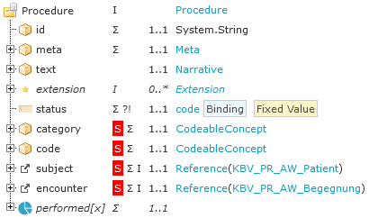 • Das Element Procedure.category.coding:Klassifizierung_der_Ressource sowie alle 1..1 Kind-Elemente sollten mit einem MS versehen werden, da es ein 1..1 Element ist und das Profil bei Fehlen nicht validiert werden kann.