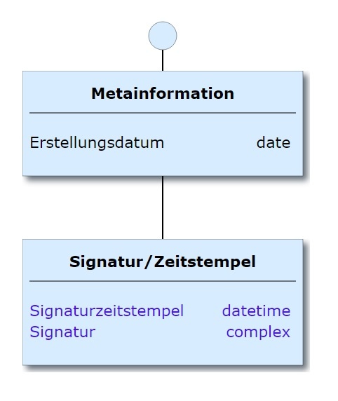 Die folgende Abbildung enthält keine Kardinalitäten, sprich keine Angaben, ob und wie häufig ein bestimmtes Element vorliegen kann bzw. muss. Diese Angaben sind abhängig vom Szenario und können folgendem Bereich entnommen werden: Anwendungsszenario, Phase I.