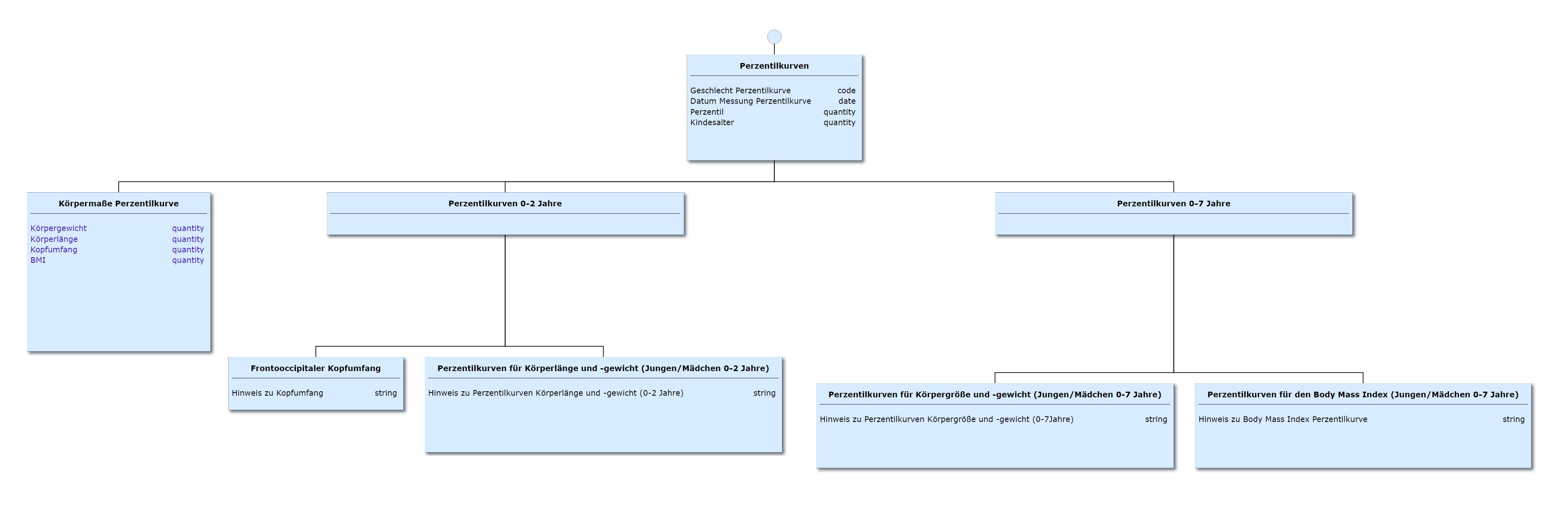 Operationalisation: Die Körpermaße werden im Rahmen des Ergebnisteils einer Kindervorsorgeuntersuchung erfasst. Außerdem sollte die Erfassung von Körpermaßen die ausserhalb einer Kindervorsorgeuntersuchung erhoben werden zur vollständigeren Abbildung der Perzentilkurven dokumentierbar sein. Dementsprechend ist die Nutzung der Körpermaße aus dem Ergebnisteil an dieser Stelle vorgesehen.