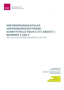 Mit dem Dokument Anforderungskatalog der Verordnungssoftware-Schnittstelle (VOS-SST) in der Version 2.1.0 erhalten Sie die Möglichkeit die Anforderungen einzusehen.