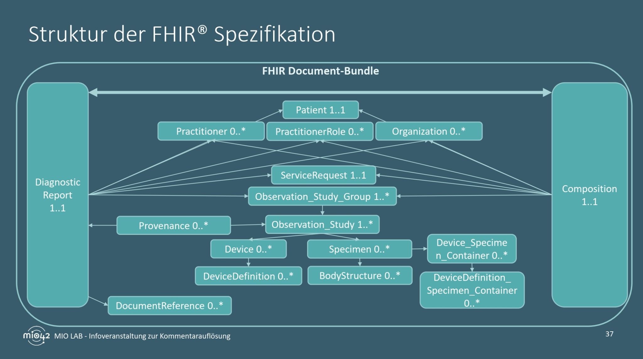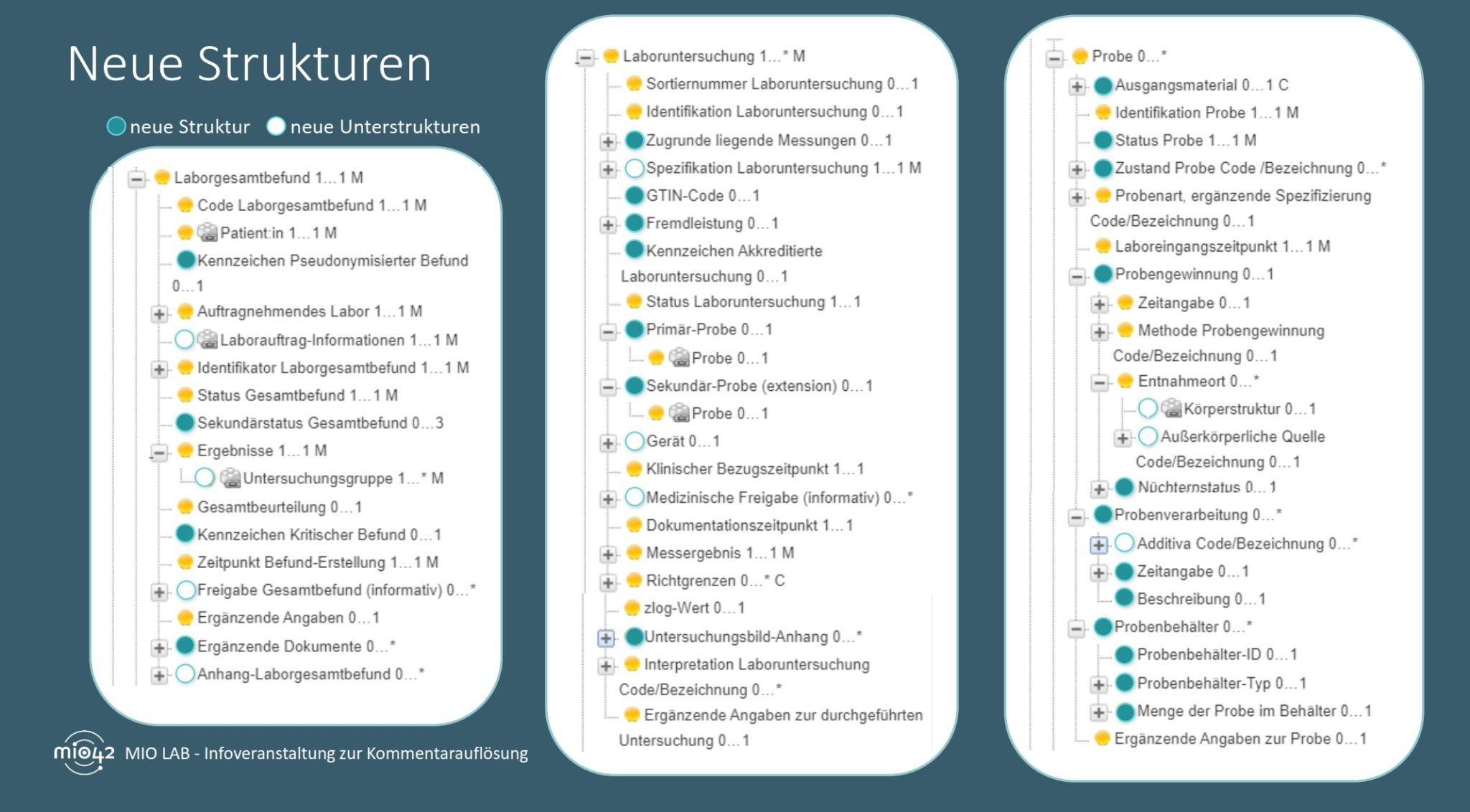 MIO LaborbefundDiese Woche fand unsere Informationsveranstaltung zur Kommentarauflösung desMIOLaborbefund und zur bevorstehenden Veröffentlichung der Spezifikation unter der Leitung unserer Projektleiterin DigitalisierungUta Rippergerstatt. Ein herzliches Dankeschön an alle, die teilgenommen haben. Besonderer Dank gilt den Mitgliedern der AG Fachgremien Labor (Beirat), die in den vergangenen Jahren intensiv an der Erstellung desMIOLaborbefund mitgearbeitet haben, sowie allen, die sich an der Kommentierung beteiligt und damit wesentlich zur Verbesserung des MIO beigetragen haben. Teil 2 der Kommentierungsergebnisse zum Laborbefund veröffentlichtEs gab zum Laborbefund so viel Feedback, dass wir die Ergebnisse in zwei Teile getrennt haben. Teil 2 der eingegangenen Kommentare und dazugehörigen Antworten wurde nun veröffentlicht: