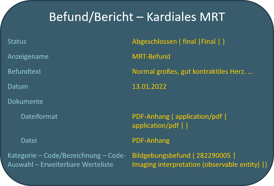 Die folgende Darstellung (PDF-Format) enthält eine Übersicht über das Element Befund/Bericht.