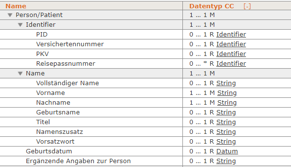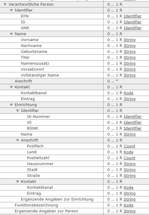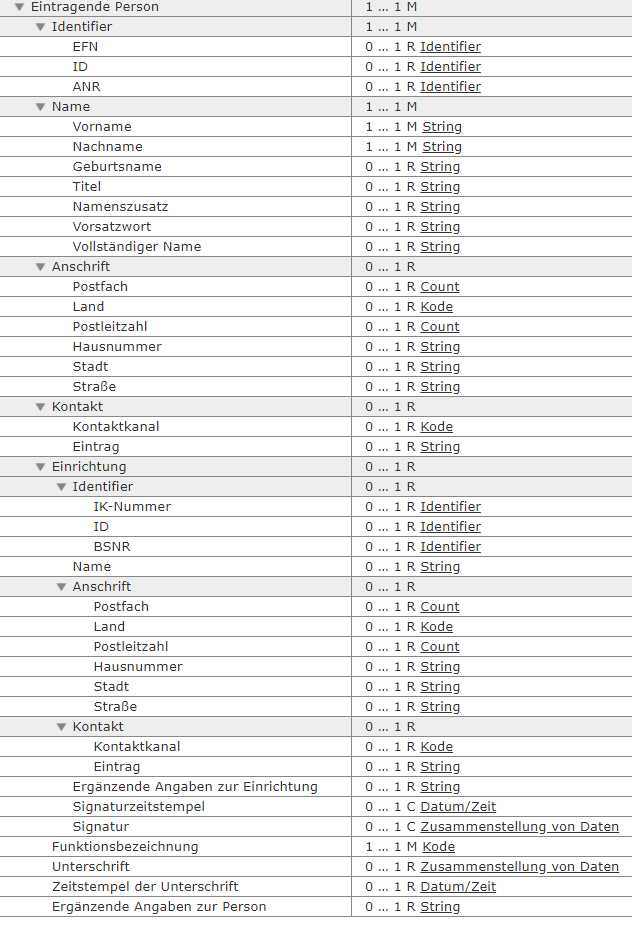 | Ergänzende Angaben zur Person | 0 … 1 R String |