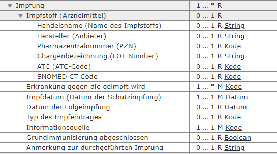 | Typ des Impfeintrages | 0 … 1 R Kode |