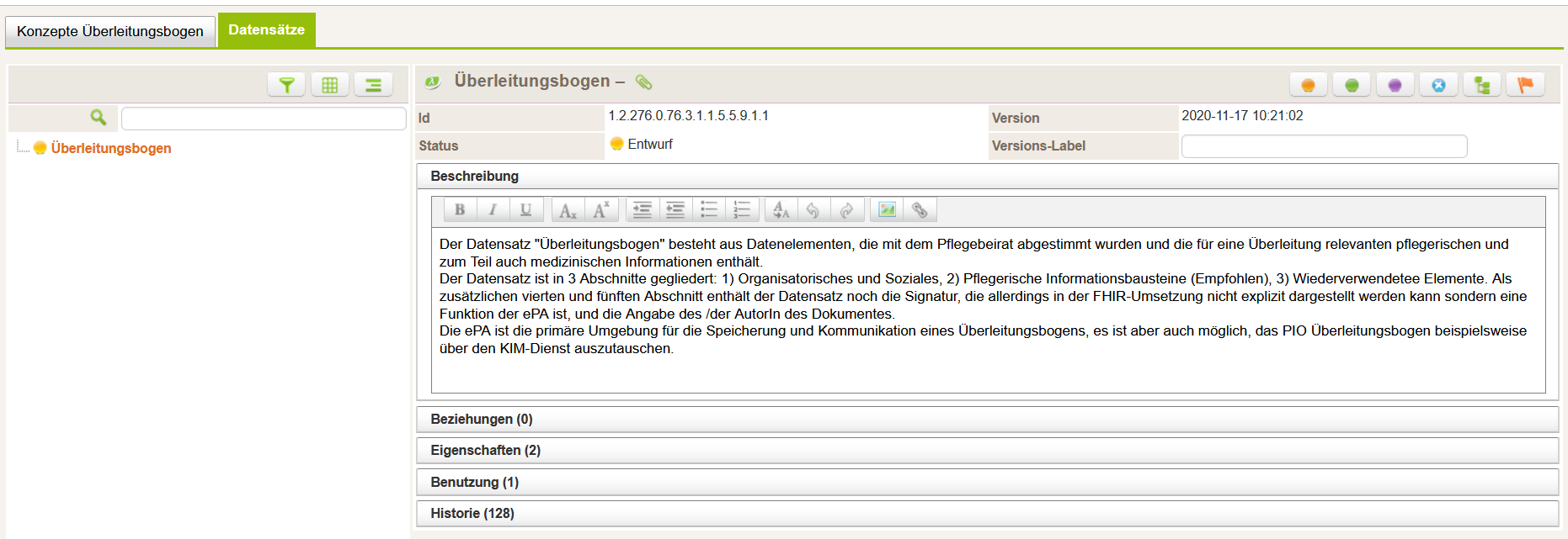 Die FHIR-Umsetzung kann hier eingesehen werden: FHIR-Ressourcen, Phase I.