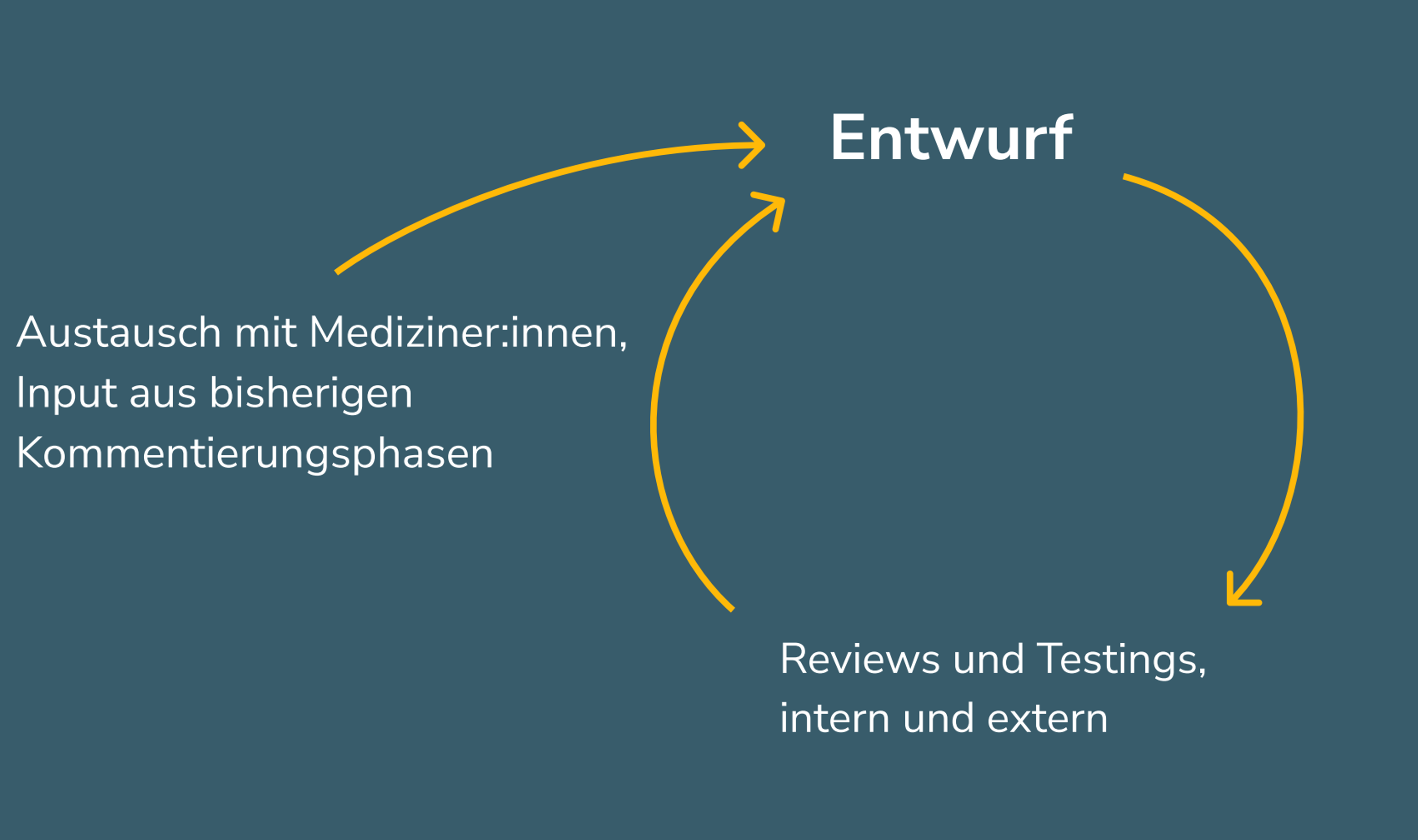 Im Rahmen der Entwicklung unserer UX-Designs beschäftigen wir uns intensiv anhand konkreter medizinischer Fallbeispiele mit dem MIO, seinen Inhalten, technischen Funktionen und den Prozessen, die das MIO bei den jeweiligen Anwender:innen unterstützen soll. Durch diese Einbindung der Nutzer-Perspektive können wir inhaltliche und technische "Denkfehler" aufdecken und erhalten immer wieder wertvollen Input für unsere Spezifikation und Implementierungsleitfäden.