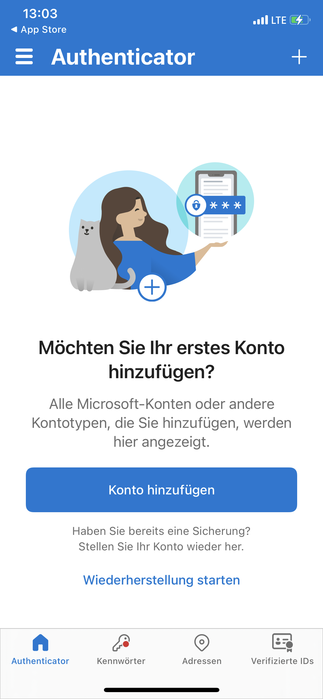 Smartphoneansicht am Beispiel der Microsoft-Authentificator-App, App herunterladen: