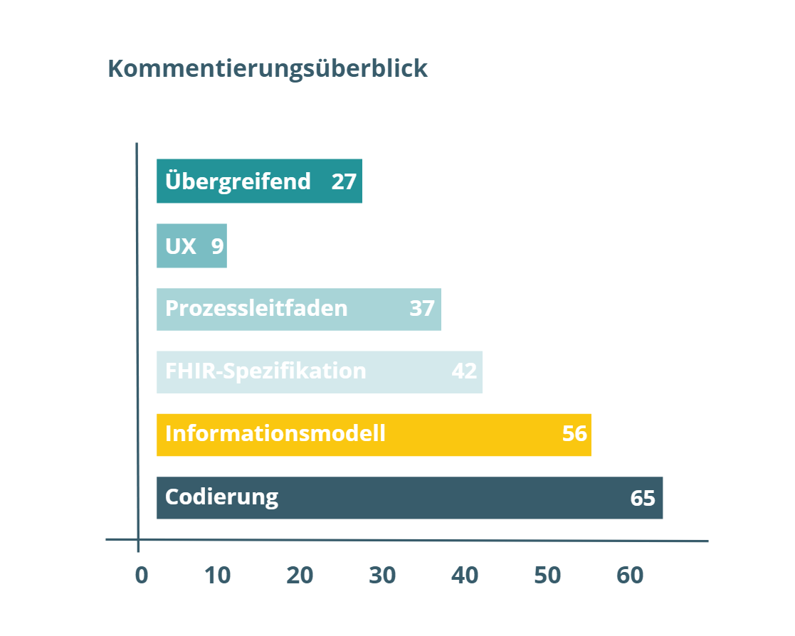 Insgesamt erreichten uns 236 Kommentare. Es beteiligten sich Fachorganisationen aller Sektoren, Primärsystemhersteller vertreten durch den bvitg und Finsoz, sowie einige einzelne Unternehmen direkt, andere Standardisierungsorganisationen sowie einzelne interessierte Anwender:innen. Wir bedanken uns sehr für die rege Teilnahme!