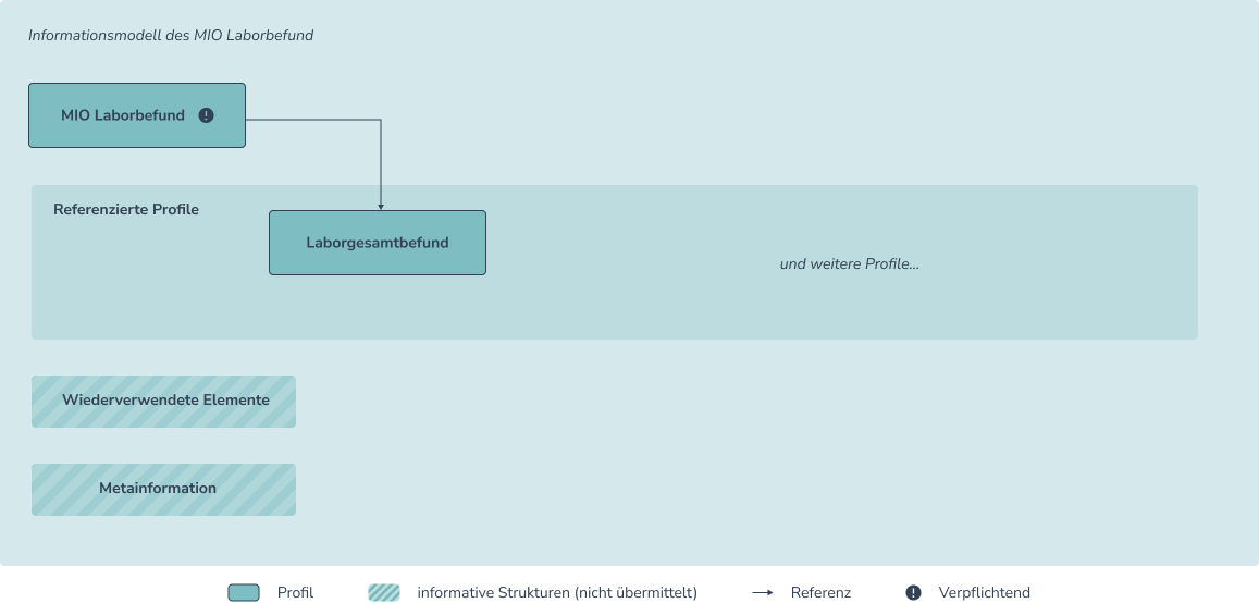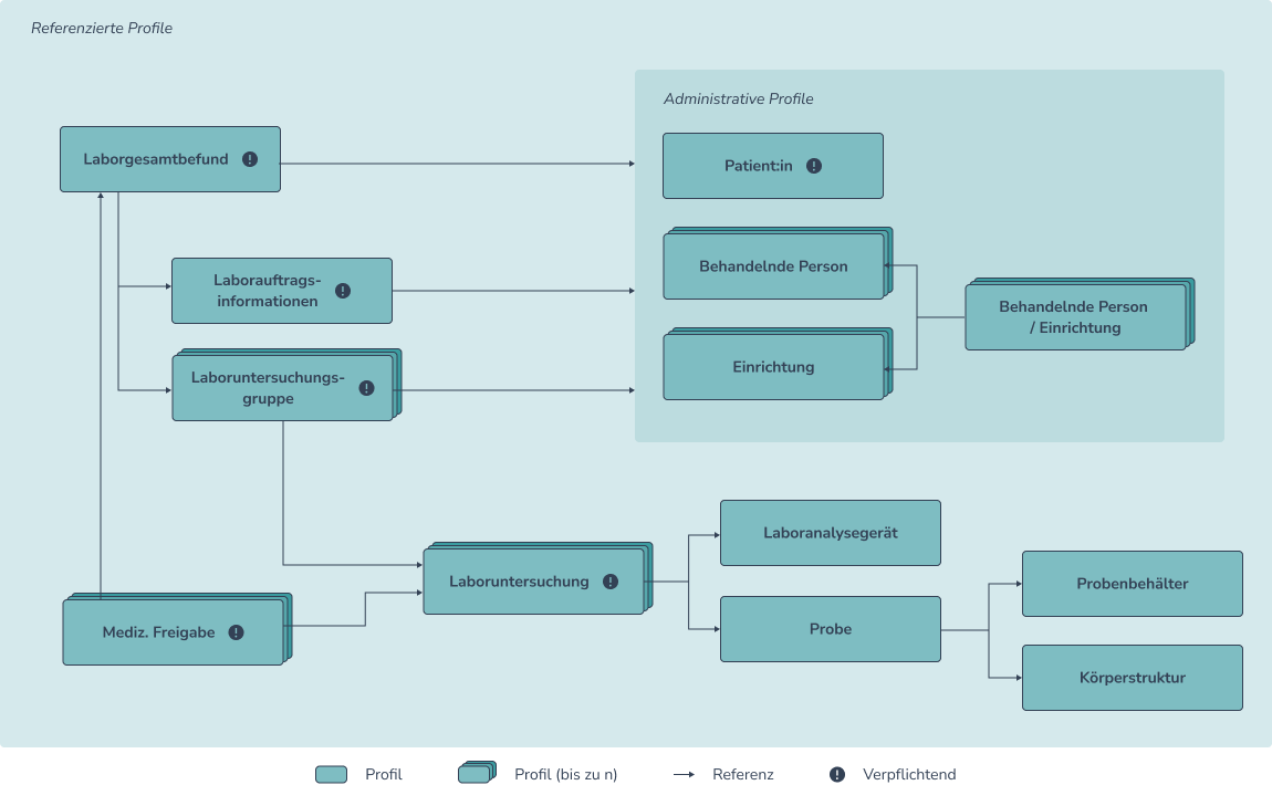 Innerhalb der referenzierten Profile sind einige Verschachtelungen in Form von definierten Referenzierungen enthalten, über die sich der Aufbau des Laborgesamtbefundes erschließt. Diese sind (vereinfacht) in folgender Abbildung 2 dargestellt.