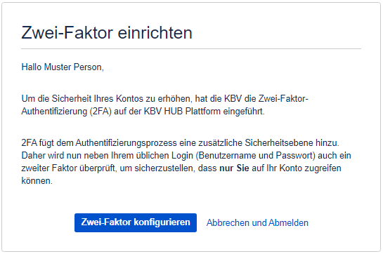 Nach Bestätigen Ihres Passwortes kommen Sie zum Infoteil der 2FA Konfiguration: