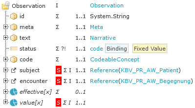 • Das Element Observation.value<span class="error">[x]</span>:valueQuantity, sowie die 1..1 Kind-Elemente sollten mit einem MS versehen werden, da es ein 1..1 Element ist und das Profil bei Fehlen nicht validiert werden kann.