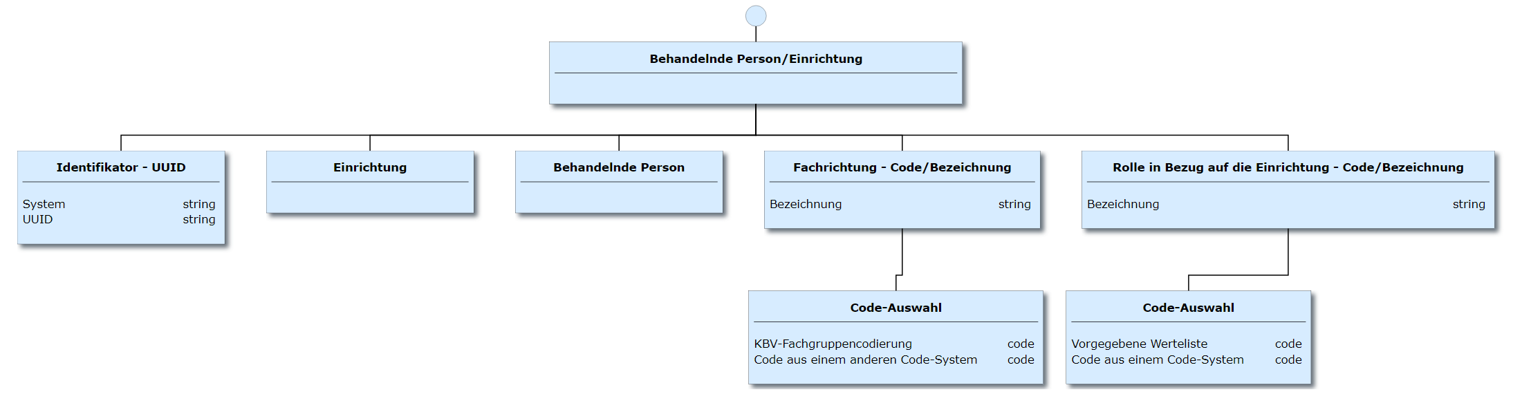 Die folgende Abbildung enthält eine Übersicht über das Element Behandelnde Person/Einrichtung.