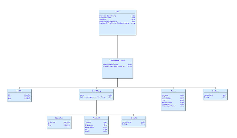Impfung und Titerbestimmungen können unabhängig von einer kassenärztlichen Zulassung oder Ermächtigung erbracht werden. Im Sinne einer Interoperabilität über alle Versorgungsbereiche hinweg sollten diese Felder optional ausgestaltet werden. So erhalten beispielsweise private Labore und privatärztlich tätige Ärzte keine LANR bzw. BSNR.