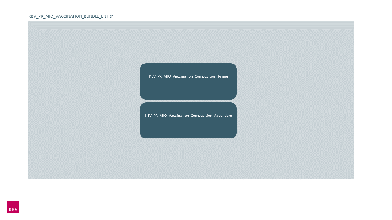 In diesem Teilabschnitt werden die einzelnen FHIR®-Ressourcen vorgestellt. Auf jeder einzelnen Unterseite wird eine Ressource dargestellt, bis auf Valuesets, Conceptmaps und Codesystems. In diesen Unterseiten werden aus Gründen der Übersichtlichkeit alle Ressourcen einer Gattung enthalten sein. Eine Ressource ist ein unabhänigiger Baustein, der eine bestimmte Semantik hat, beispielsweise beschreibt die Ressource KBV_PR_MIO_Vaccination_Patient eine zu behandelnde Person mit all ihren Attributen. Die Benennung der Unterseiten wurde aus Gründen der Übersichtlichkeit an der Stelle KBV_PR_MIO_Vaccination_ abgeschnitten.