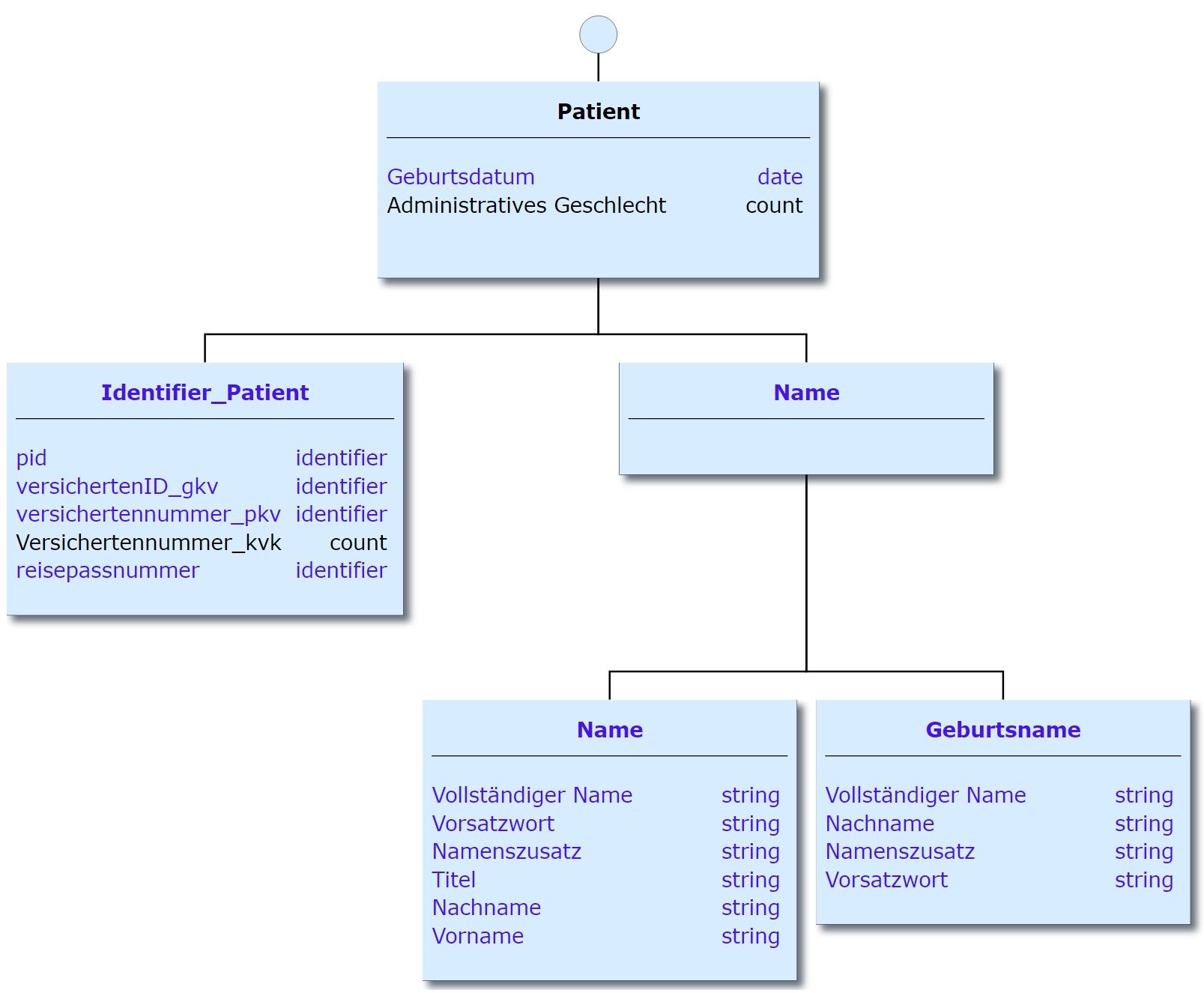 Dieses Element beschreibt eine Person, die eine oder mehrere medizinische Leistungen in Anspruch nimmt, also einen Patienten. In diesem Fall die Person, für die ein Eintrag im Impfpass erstellt wird. Jeder Eintrag im Impfpass enthält jeweils die hier definierten Informationen zur Person.