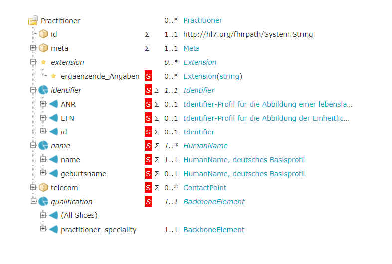 Mit diesem Profil können sowohl ärztliche als auch nicht-ärztliche behandelnde Personen abgebildet werden. Es sind diverse Identifier (Identifikatoren) zur Abdeckung dieser Bandbreite vorgesehen.