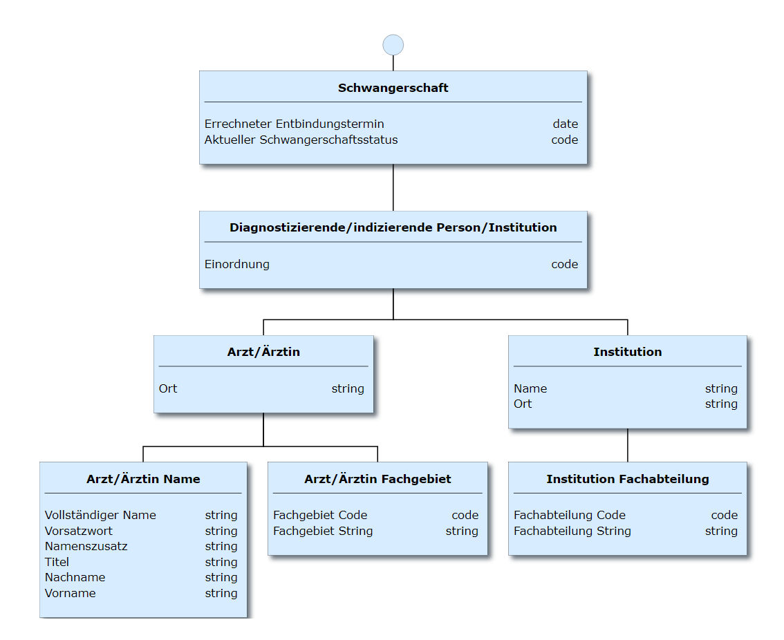 - In dem Informationsmodell Notfalldaten-Management heißt das Element: "Schwangerschaft"