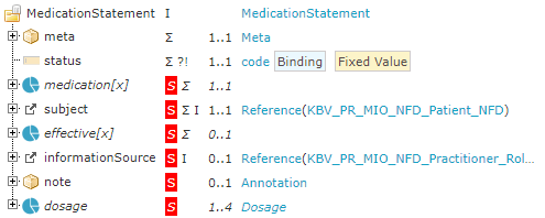 Dieses Profil bildet einen Medikationseintrag ab. Die im FHIR®-Profil abgebildete Information findet sich im Informationsmodell unter 1.2.2.1.5.1 NFD_Medikationseintrag, 1.2.2.1.5.1.1 Medikation und 1.2.2.1.5.1.3 Diagnostizierende/indizierende Person/Institution.