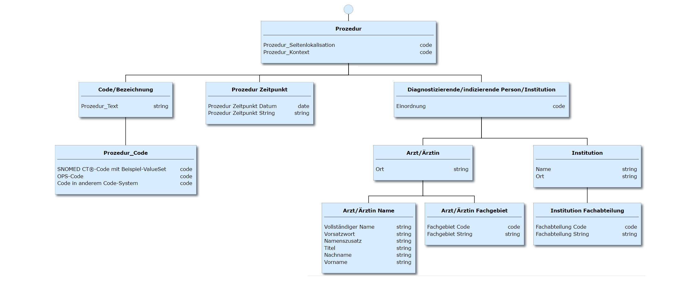 • In dem Informationsmodell Notfalldaten-Management gibt es keinen separaten Abschnitt "Prozeduren"; relevante Prozeduren werden dort den Diagnosen zugeordnet