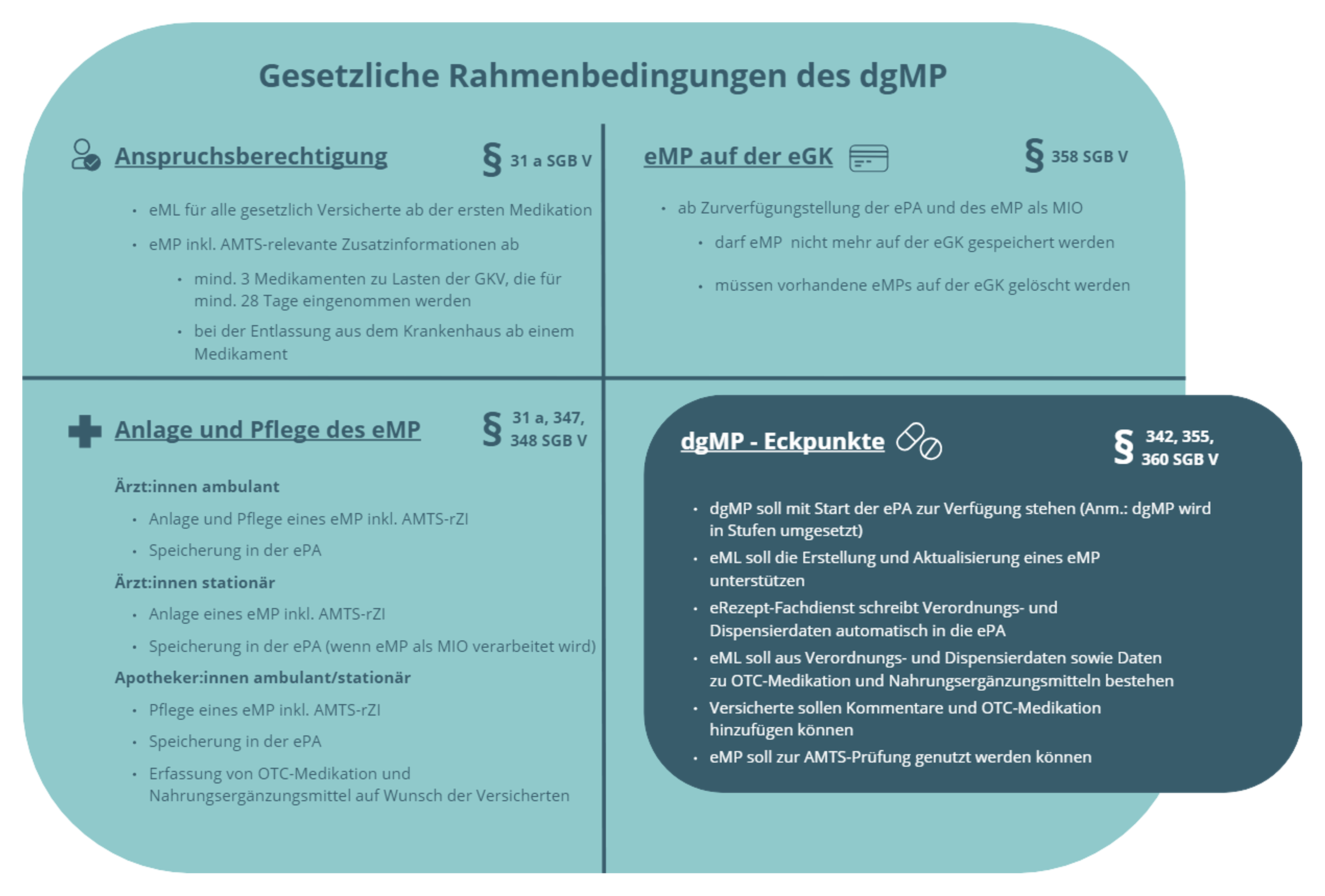 Im §§ 342; 355 und 360 SGB V regelt das DigiG folgende Punkte zum digital gestützten Medikationsprozess in der ePA:
