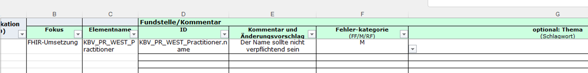 Download Excel-Tabelle zur Kommentierung Arbeitspaket 1 (aktualisierte Version, Vorauswahl der FHIR-Elemente erweitert, Stand 19.01. 17:14 Uhr): AP1-Kommentierungsprotokoll.xlsx
